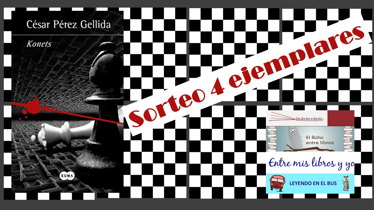 Hoy os traemos un sorteo que para nosotros es muy especial, no solo porque el autor es uno de los que mejores horas lectoras nos ha hecho pasar, e incluso no lectoras porque nos ha deparado también encuentros y charlas muy interesantes. Pero lo que hace realmente especial esta novela es que supone un cierre que nos obligará a despedirnos de algunos de nuestros personajes literarios favoritos y es por ello que hoy, justo el día de su publicación, Pedro de El Búho entre libros, Teresa de Leyendo en el bus, Manuela de Entre mis libros y yo, y nosotras Concha y Bea de De lector a lector, queremos compartirlo con vosotros sorteando un ejemplar en cada blog de Konets de César Pérez Gellida.